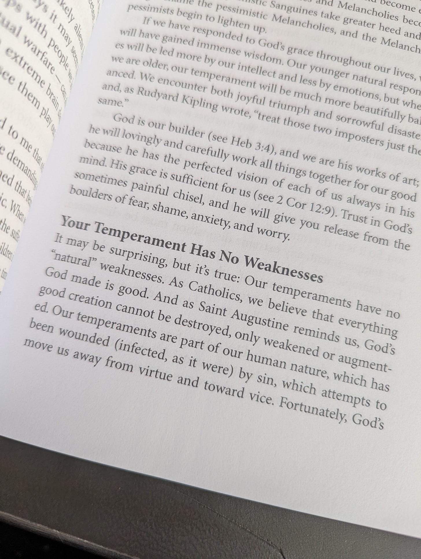 The other revelation is her articulation of the weaknesses each temperament will fall into, and their strengths when living a life of virtue.
